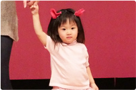 毎年、2学期最後にホールでの発表会があり、親子クラスもママと一緒に舞台